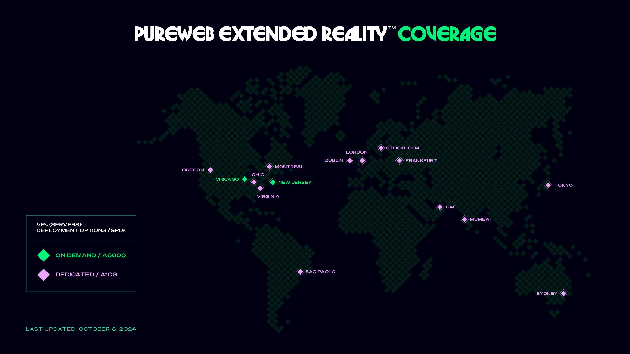 Our high-performance VR streaming now supports both On Demand and Dedicated deployments, leveraging powerful NVIDIA RTX A6000 instances for robust performance across North America. With the addition of Dedicated providers utilizing NVIDIA A10G GPUs, we also offer exceptional streaming quality and reliability on a global scale.
